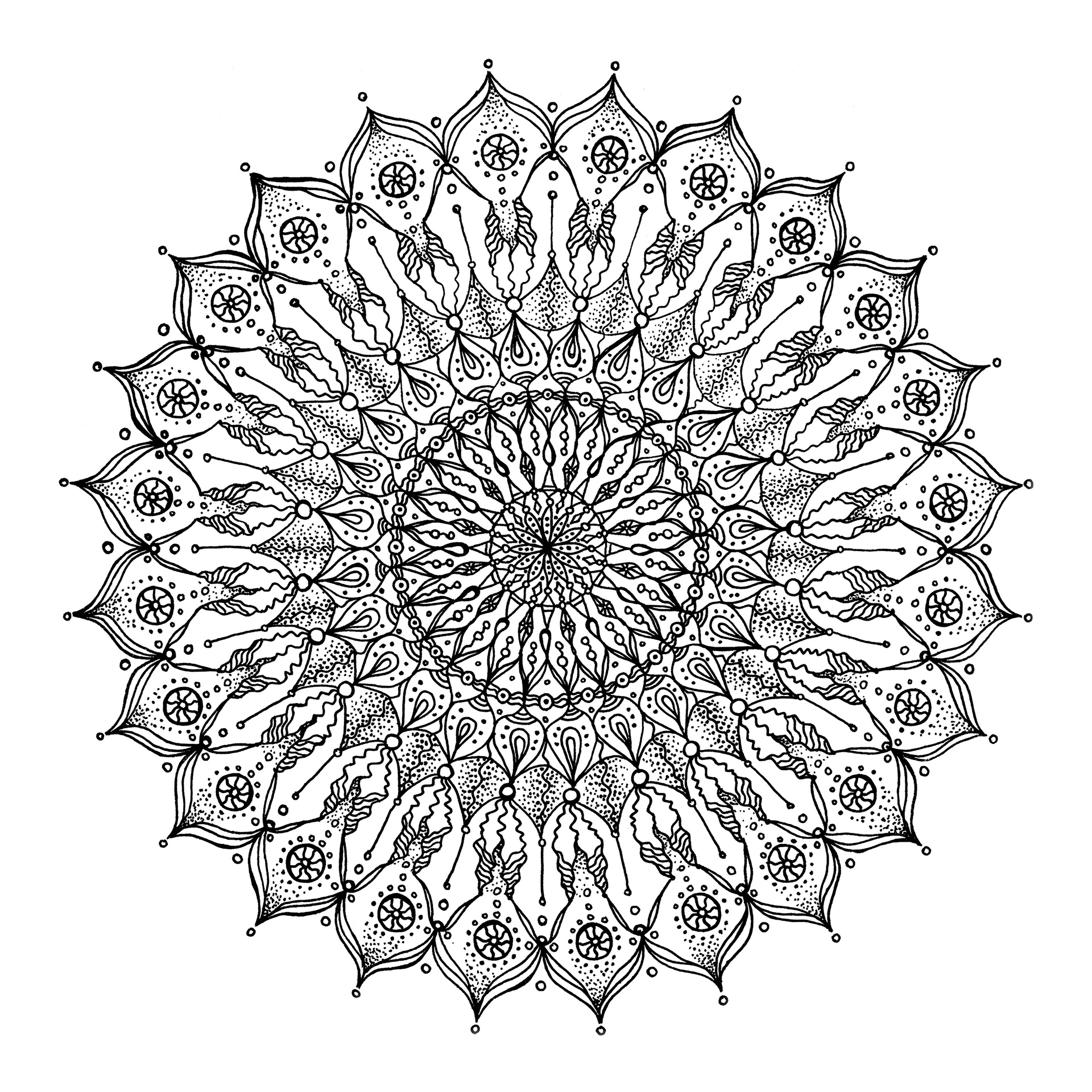 "Dot by dot" is a hand drawn mandala later scanned and prepared for digital printing. It's appliance is multidirectional. It can be adapted as an art work itself or as a print design for notebook, clothing, etc. It can also be a part of interior design, branding, etc.